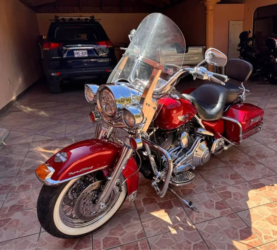 Harley Davidson Road King año 2001 , motor 1450cc inyectado, caja 5ta, 66800 millas , mecánica preventiva reciente , cambio de tensoras , guías y aceite , discos de freno delanteros y pastillas de freno nuevos , Luces led ,mucho cromo, todo al día lista para disfrutarla marchamo 2026 pago , precio ₡5.200.000 levemente negociable a la plata xq las llantas están maso, preferiblemente venta , para recibir el precio cambia a ₡5,5 mills está en Cartago CR 8803-4193 No ofertas de Quema .